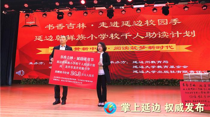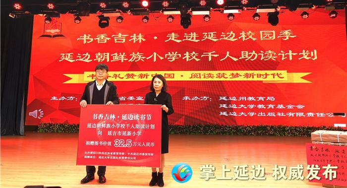 活动中,延边大学出版社有限责任公司向延吉市中央小学、延吉市延新小学、延吉市公园小学、龙井市龙井实验小学、龙井市北安小学5所朝鲜族小学校捐赠了价值135万元的图书。